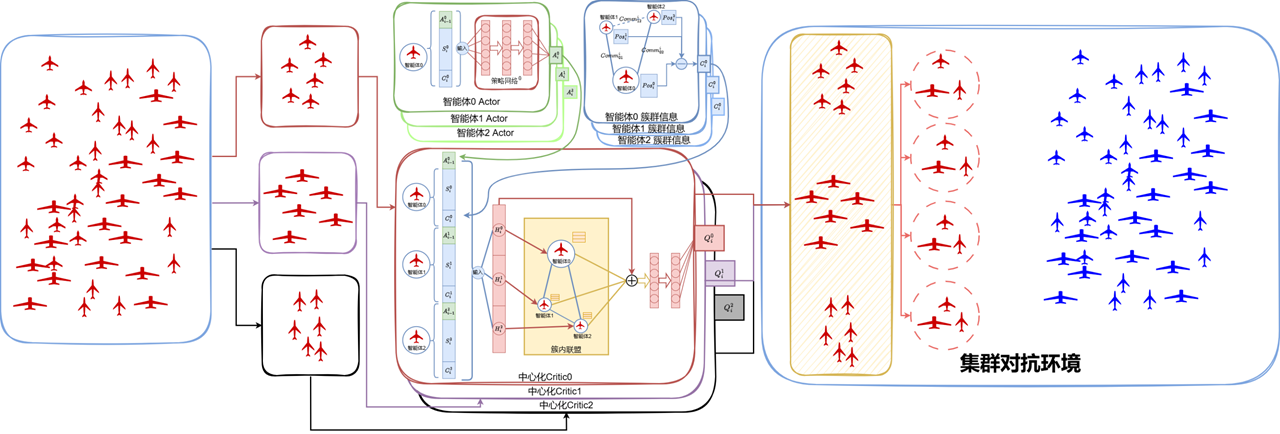 2、针对大规模智能体通信与协调问题,研究基于MARL的通信学习机制以及高效联合策略模型;
